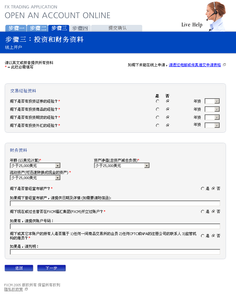 第三步 投资经验和财务状况资料,无关紧要,可按图示填写